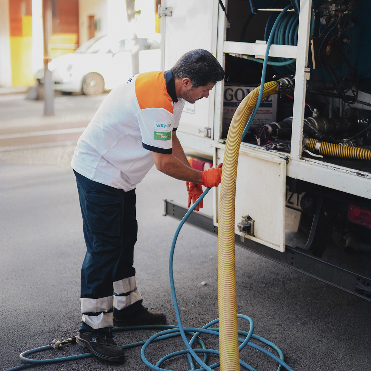 Utilizamos camión cisterna con alta presión y alta temperatura para eliminar residuos de forma completa.